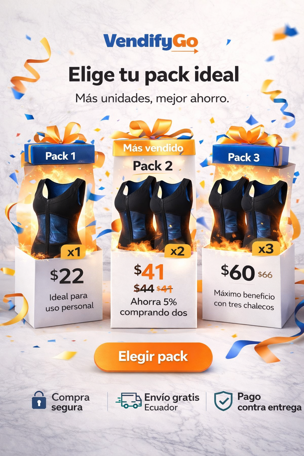 Ponte el chaleco como una prenda normal y ajusta el cierre frontal según tu comodidad.
